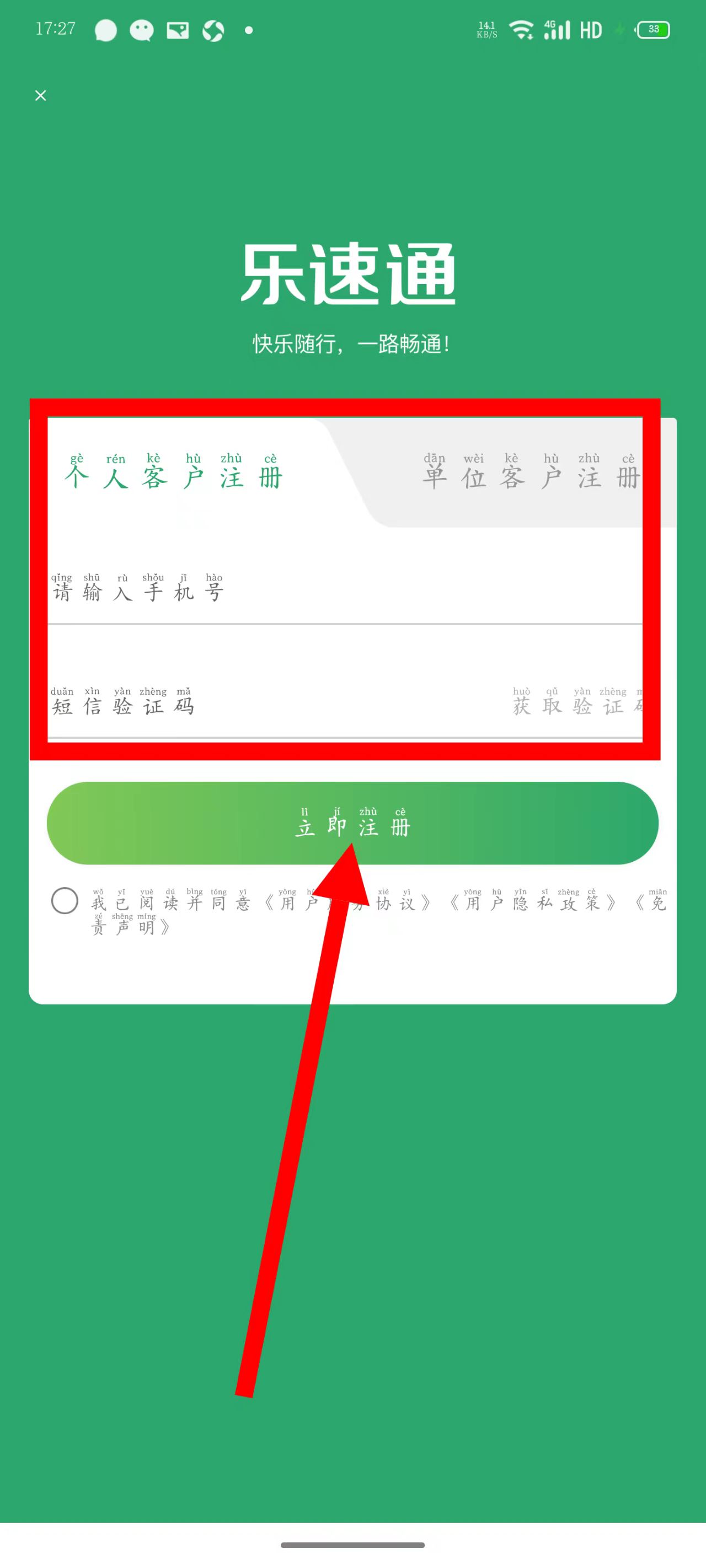 4、在注冊頁面,輸入手機號,勾選后,點擊立即注冊完成操作。