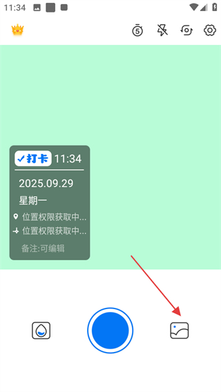1、在智能打卡水印相機(jī)首頁(yè)點(diǎn)擊頁(yè)面下方的圖片圖標(biāo),進(jìn)入圖片選擇頁(yè)面。
