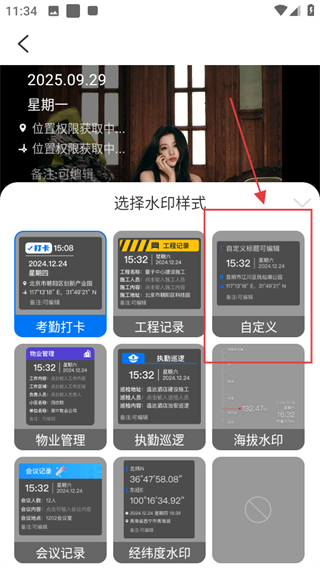 4、在水印選擇頁(yè)面,選擇自定義水印樣式,完成自定義水印設(shè)置。