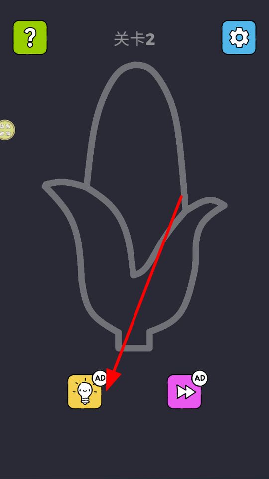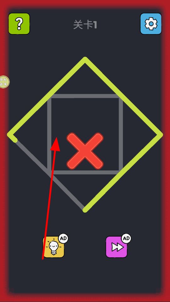 3、遇到難以完成的關(guān)卡時(shí),點(diǎn)擊關(guān)卡中帶有燈泡標(biāo)識且標(biāo)注AD的按鈕 ,觀看廣告獲取提示,從而得到繪制思路。