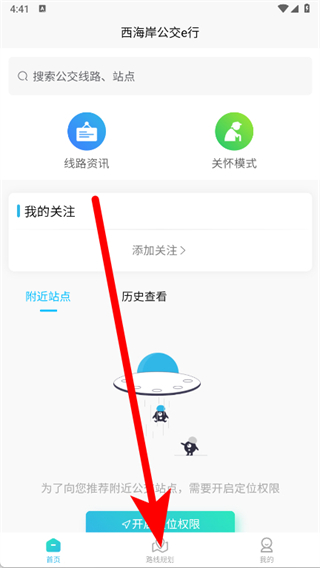2、進(jìn)入APP首頁后,點(diǎn)擊底部路線規(guī)劃。