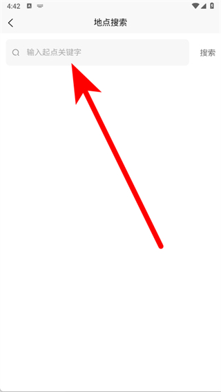 4、在地點(diǎn)搜索頁面,輸入起點(diǎn)關(guān)鍵字,完成起點(diǎn)設(shè)置,查詢路線。
