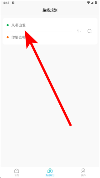 3、在路線規(guī)劃頁面,點(diǎn)擊從哪出發(fā)。