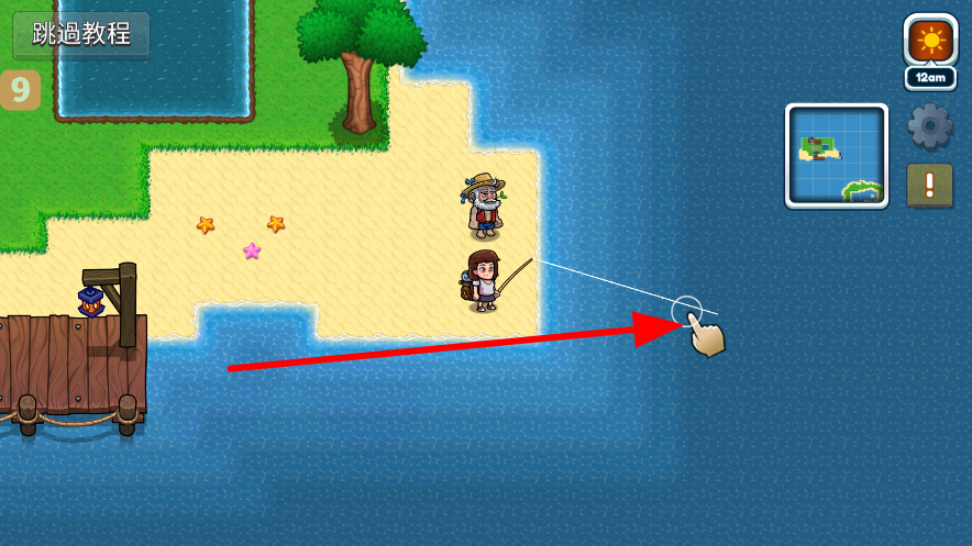1、首先在游戲場(chǎng)景中,來(lái)到海邊合適位置,按照提示點(diǎn)擊相應(yīng)海域,拋出魚竿,靜靜等待魚上鉤,開啟釣魚過(guò)程。