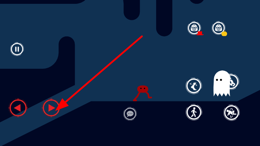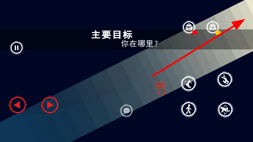 1、點(diǎn)擊界面左側(cè)的前進(jìn)按鈕,控制角色在場(chǎng)景中移動(dòng),朝著目標(biāo)方向前進(jìn),開啟關(guān)卡挑戰(zhàn)的第一步,為后續(xù)操作創(chuàng)造條件。