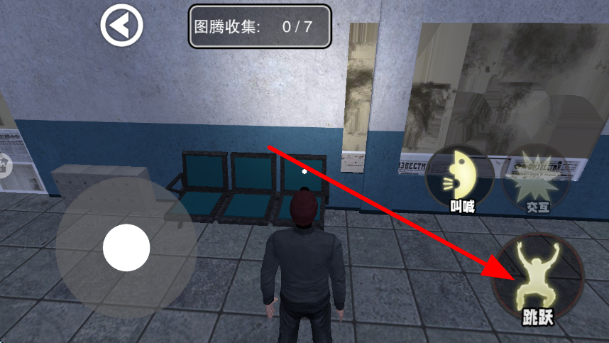 1、當(dāng)遇到需要跨越的障礙時(shí),點(diǎn)擊跳躍按鈕,讓角色進(jìn)行跳躍操作,跨越障礙,為完成任務(wù)、尋找目標(biāo)物品開辟道路。