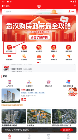 1、打開房產(chǎn)類應(yīng)用,點擊首頁此漢買房入口,進(jìn)入?yún)^(qū)域房產(chǎn)服務(wù)頁面。