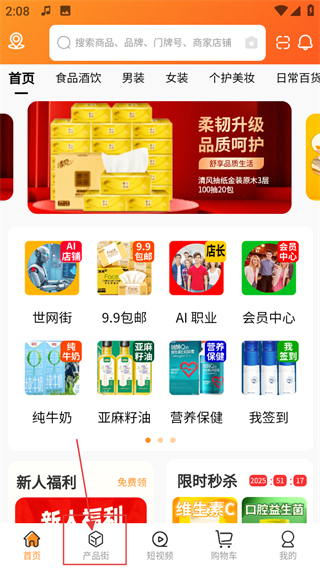 1、點(diǎn)擊頁面底部的產(chǎn)品街,進(jìn)入產(chǎn)品街頁面。