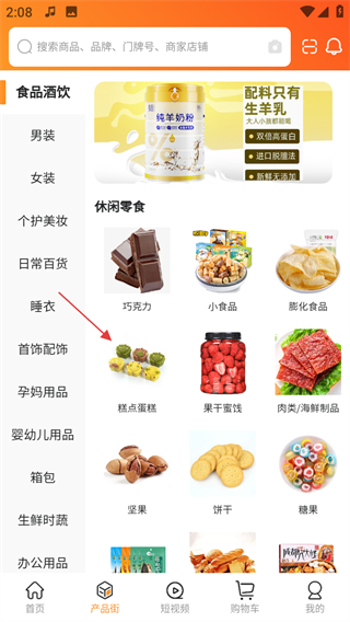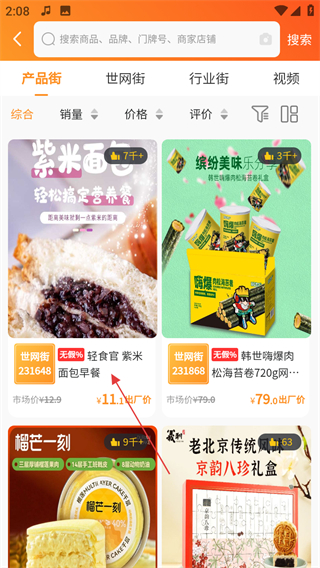 2、在產(chǎn)品街頁面,選擇想要購買的商品類別,進(jìn)入商品列表頁面。