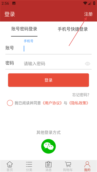 2、在個人中心頁面,點擊注冊,進入注冊頁面。