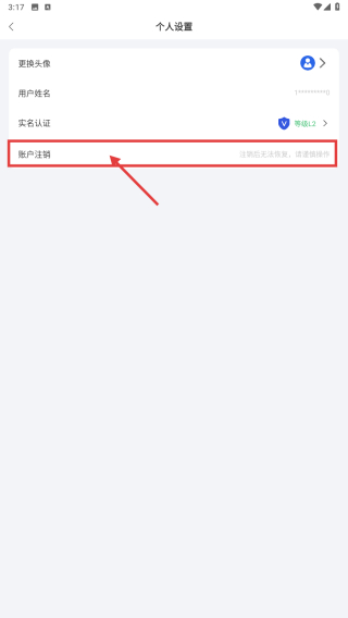 3、在個人設(shè)置頁面,點擊賬戶注銷選項,進入賬戶注銷流程。