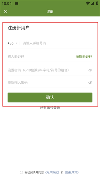 3、在注冊(cè)頁(yè)面,輸入信息,點(diǎn)擊確認(rèn)完成注冊(cè)。