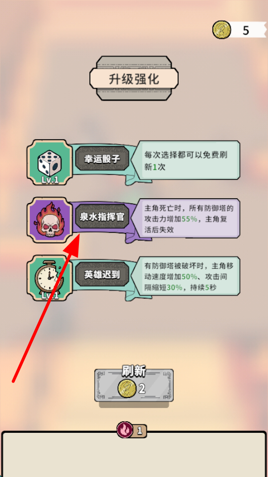 3、升級強(qiáng)化選擇,比如能讓防御塔在特定情況下攻擊力提升,或是主角獲得移動速度加成等選擇合適的強(qiáng)化效果,助力戰(zhàn)斗。