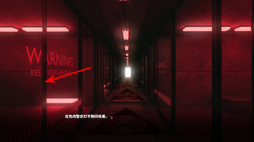 3、在紅色警示燈閃爍的走廊場(chǎng)景中,注意環(huán)境提示,此類場(chǎng)景通常暗示危險(xiǎn)或關(guān)鍵劇情節(jié)點(diǎn),謹(jǐn)慎探索留意信息。