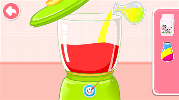 2、從屏幕右側(cè)選擇彩色瓶子,點(diǎn)擊倒入攪拌機(jī)添加配料。