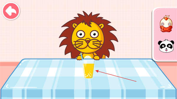 4、完成后倒入杯子,點(diǎn)擊屏幕給小動物喂食。