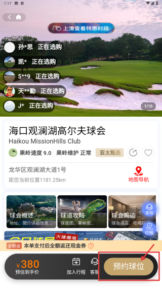 4、在詳情頁面,點(diǎn)擊預(yù)約球位按鈕,進(jìn)行球位預(yù)約操作。