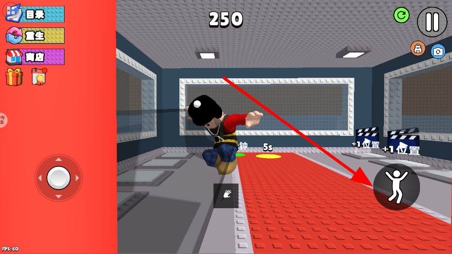 2、點(diǎn)擊右側(cè)的跳躍按鈕,讓角色進(jìn)行跳躍,可越過障礙或調(diào)整位置,在與敵人互動(dòng)或場景探索中發(fā)揮作用。