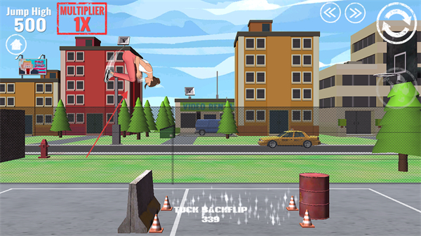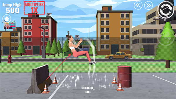 3、在空中再次操作角色,使其做出如翻轉(zhuǎn)等高難度動(dòng)作獲取更高分?jǐn)?shù)。
