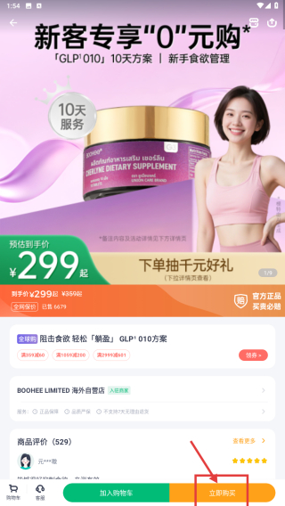 4、在詳情頁(yè)面,點(diǎn)擊立即購(gòu)買按鈕,進(jìn)行商品購(gòu)買操作。