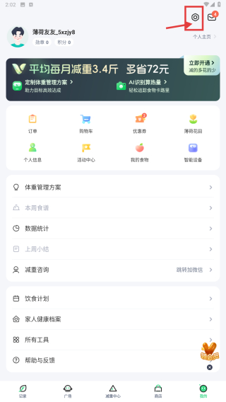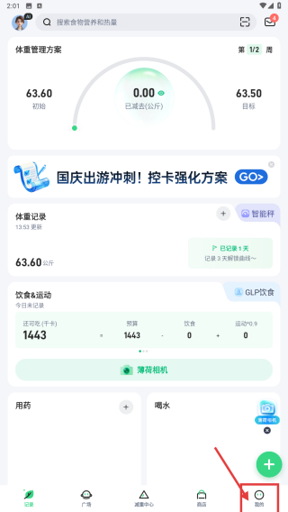 1、打開體重管理類應(yīng)用,點(diǎn)擊底部我的選項(xiàng),進(jìn)入個(gè)人中心頁面。