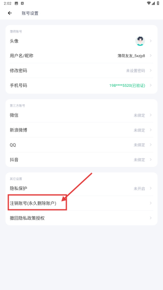 4、在賬號(hào)設(shè)置界面,點(diǎn)擊注銷賬號(hào)永久刪除賬戶選項(xiàng),進(jìn)行賬號(hào)注銷操作。