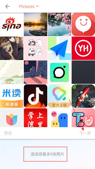 2、在圖片選擇頁面,按照提示選擇照片后,點(diǎn)擊下一步。