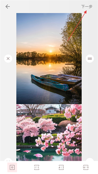 3、在圖片預(yù)覽頁面,確認(rèn)所選圖片后,點(diǎn)擊下一步,進(jìn)入拼接編輯頁面。