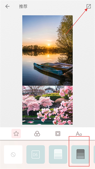 4、在拼接編輯頁面,選擇喜歡的模版后點(diǎn)擊右上角圖標(biāo),即可保存。
