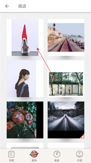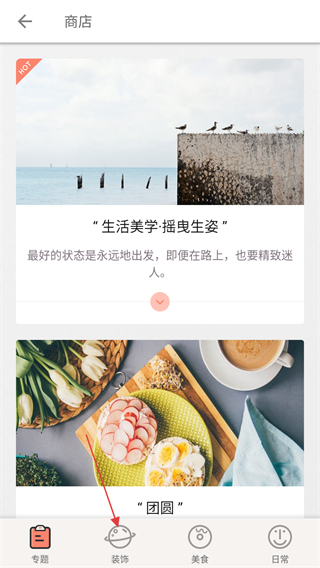 2、在商店頁面,點擊底部的裝飾分類,查看裝飾相關的素材等內(nèi)容。
