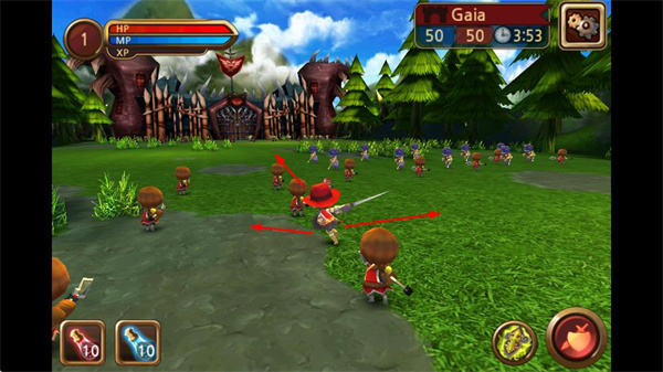 2、靠近敵方大門等防御設施時,指揮小兵進行攻擊,摧毀敵方的防御,突破敵方防線,進入敵方區(qū)域。