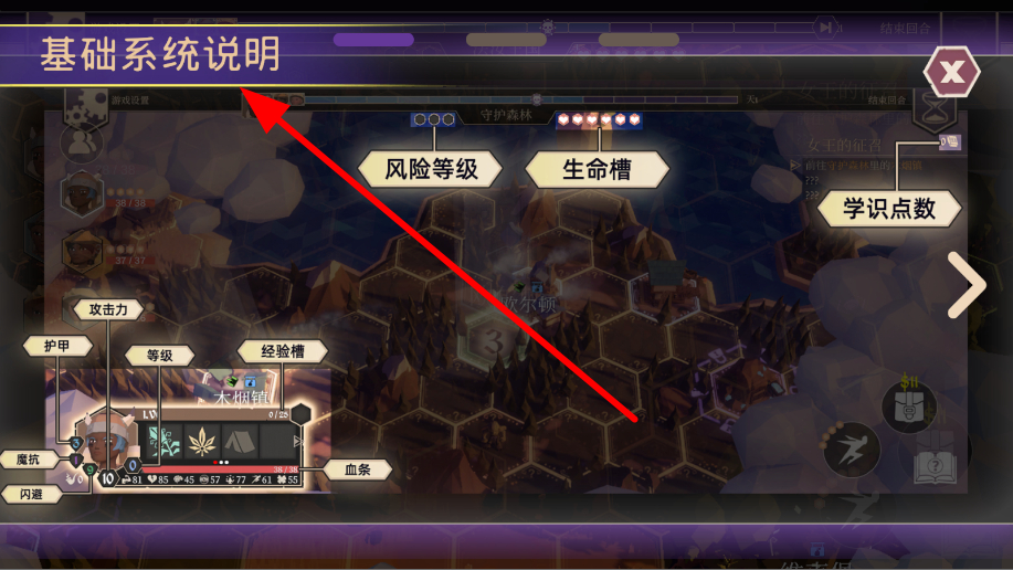 2、提供基礎(chǔ)系統(tǒng)說(shuō)明,其中包含風(fēng)險(xiǎn)等級(jí)、生命槽、學(xué)識(shí)點(diǎn)數(shù)等各類(lèi)關(guān)鍵信息,仔細(xì)查看這些說(shuō)明,能幫助玩家熟悉機(jī)制。