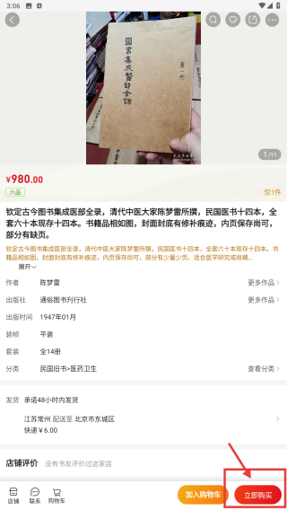 4、在詳情頁面,點(diǎn)擊立即購買按鈕,進(jìn)行圖書購買操作。