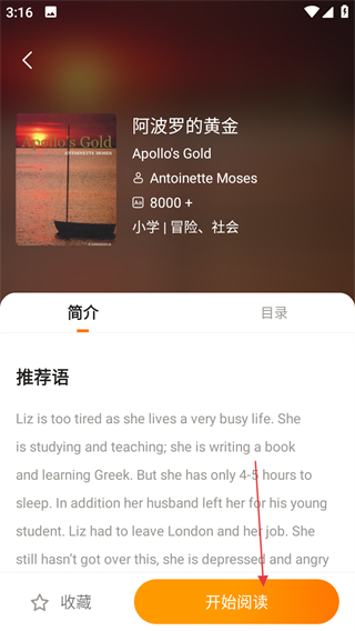 3、在書籍詳情頁面,點擊開始閱讀,進入書籍閱讀頁面。