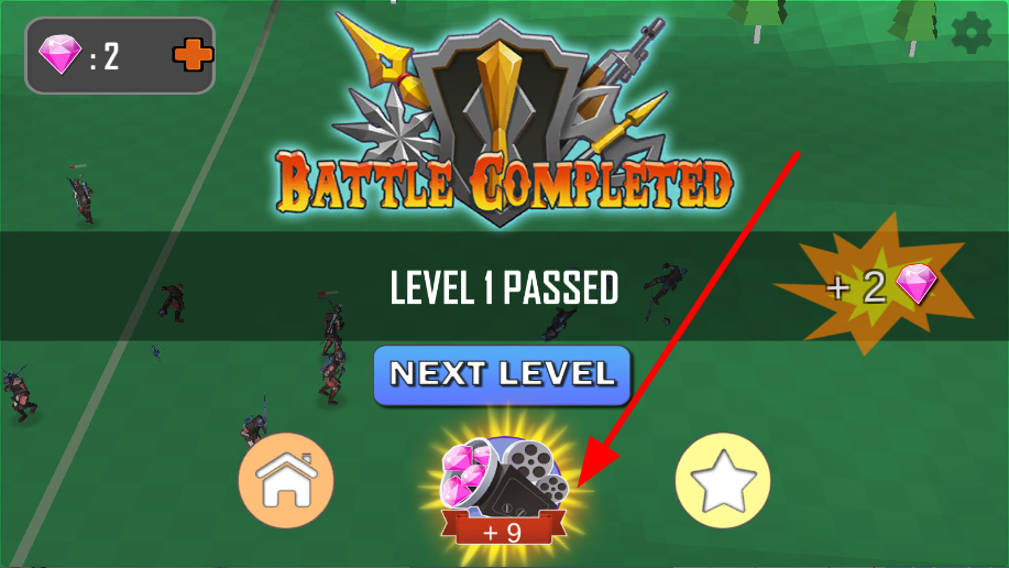 4、持續(xù)與敵人作戰(zhàn),最終擊敗所有敵人,即可取得勝利獲取鉆石等資源獎勵,體驗策略戰(zhàn)斗的樂趣與勝利的喜悅。