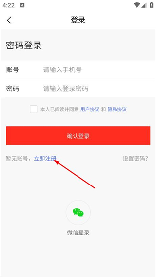3、在登錄頁(yè)面,即可點(diǎn)擊立即注冊(cè),進(jìn)入注冊(cè)頁(yè)面。
