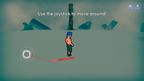 1、進(jìn)入游戲,按照提示,點(diǎn)擊屏幕左下方的虛擬搖桿Use the joystick to move around!控制角色移動(dòng)。