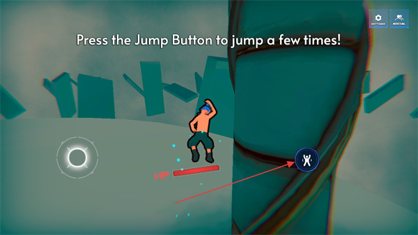 2、當(dāng)需要跨越障礙時(shí),點(diǎn)擊屏幕右側(cè)的跳躍按鈕Press the Jump Button to jump a few times!讓角色進(jìn)行跳躍。