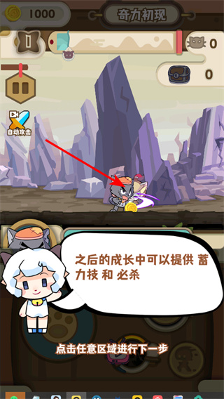 2、進(jìn)入奇力初現(xiàn)子關(guān)卡,該關(guān)卡是初入奇貓國的首個子關(guān)卡,通過此關(guān)卡可熟悉奇力系統(tǒng)。