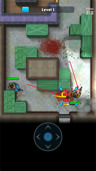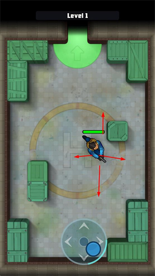 1、通過(guò)虛擬搖桿操控角色在不同的關(guān)卡中移動(dòng),探索場(chǎng)景,尋找敵人。