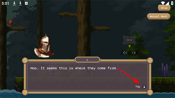1、點擊Tap按鈕,關(guān)閉對話界面,進入游戲操作環(huán)節(jié),這是推進劇情和開始冒險必要步驟。