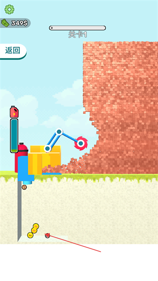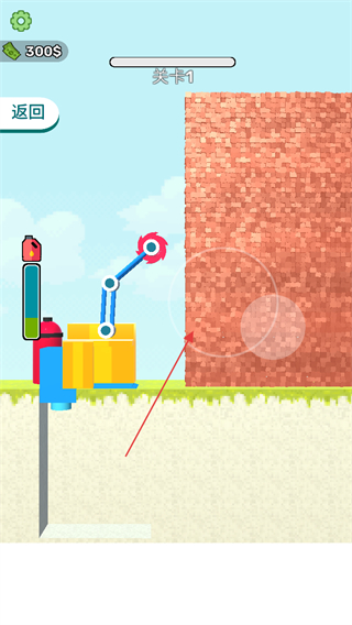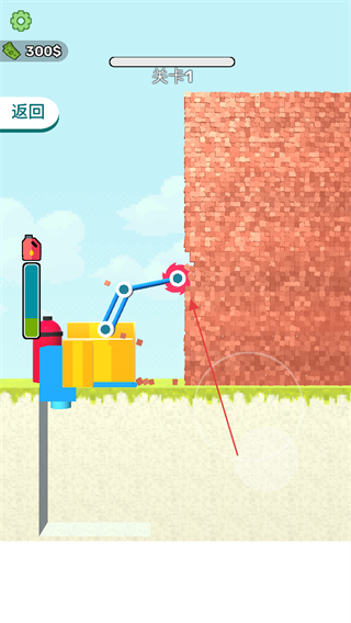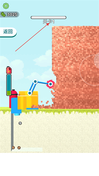 4、持續(xù)操作機(jī)械臂拆墻,收集掉落的金幣等獎勵,在規(guī)定時間內(nèi)盡量拆除更多磚墻,完成關(guān)卡目標(biāo)。