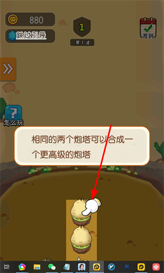 1、合成炮塔,將相同的兩個(gè)炮塔合成更高級的炮塔,提升防御和攻擊能力,抵御敵人核心操作。