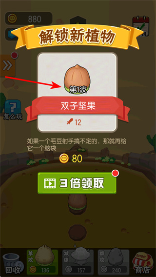 2、解鎖新植物雙子堅(jiān)果,該植物可增強(qiáng)防御,應(yīng)對敵人的攻擊,是關(guān)卡推進(jìn)的重要戰(zhàn)力補(bǔ)充。