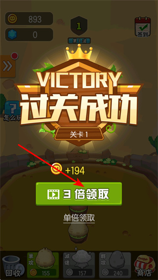 3、領(lǐng)取三倍獎(jiǎng)勵(lì),在過關(guān)成功后點(diǎn)擊3倍領(lǐng)取,獲取更多金幣資源,用于后續(xù)升級植物和炮塔。