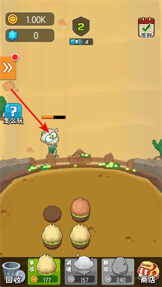 4、應(yīng)對敵人進(jìn)攻,關(guān)注場景中的敵人,合理布置植物炮塔,用攻擊特性消滅敵人,保障順利通過。
