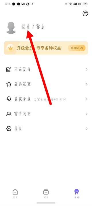 3、在我的頁(yè)面,點(diǎn)擊注冊(cè)登錄按鈕。