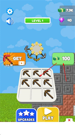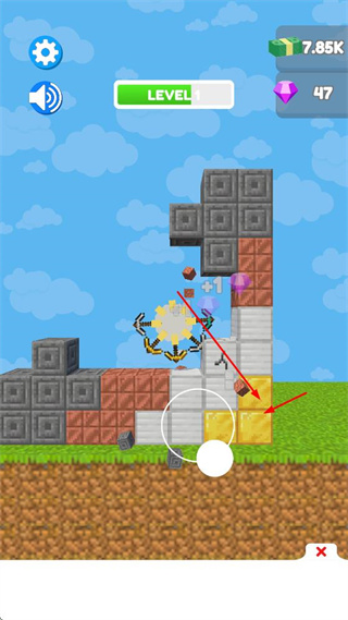 2、點(diǎn)擊PLAY按鈕進(jìn)入挖礦關(guān)卡,操控帶有鎬頭的裝置,對(duì)由方塊組成的結(jié)構(gòu)進(jìn)行挖掘。挖掘過(guò)程中,會(huì)獲得金錢獎(jiǎng)勵(lì)。