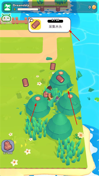 1、玩家可操控角色采集資源,比如采集木頭,通過與樹木互動獲取木頭材料,采集過程有進度顯示。