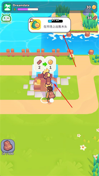 3、建造好市場后,可在市場上出售采集到的資源,例如出售木頭,出售時有資源兌換比例,完成出售能獲得金幣。